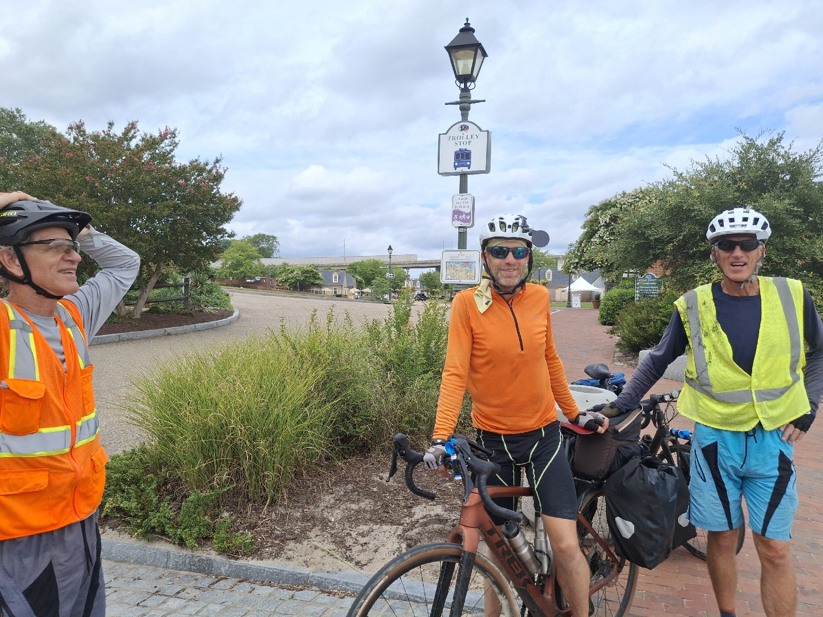 My dad yelled at the camera, "All The way from Astoria, Oregon, to York Town, Virginia!!" People nearby gasped at my dad's comment and looked stunned. They then asked us if we were serious, and once we confirmed it, they congratulated us and offered to take some pictures with all of us in it. After a few snaps of the camera, we headed off to wash our sandy tires off, then to the church, to drop things off.
